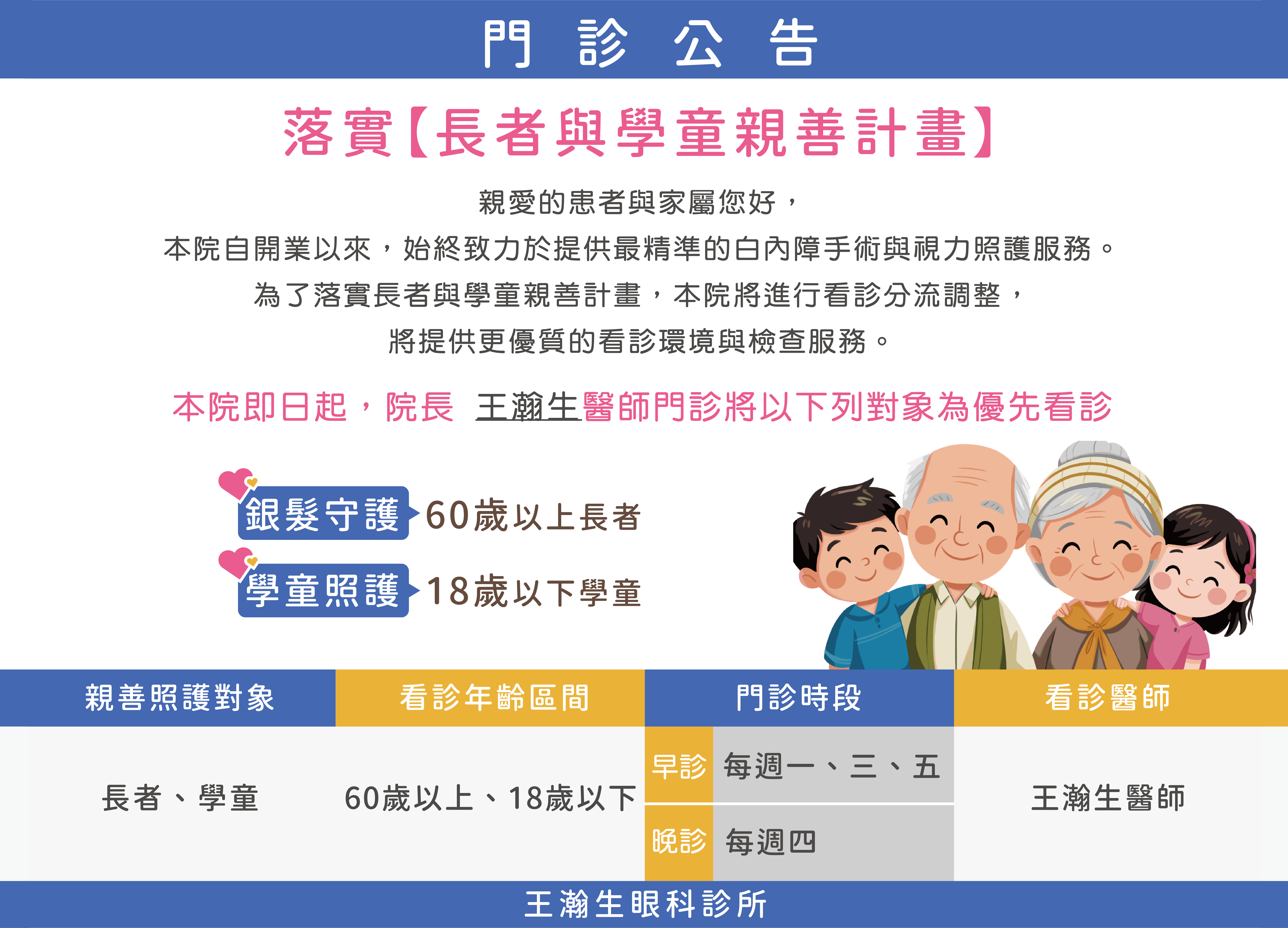 115年最新門診公告|王瀚生醫師「長者與學童親善計畫」